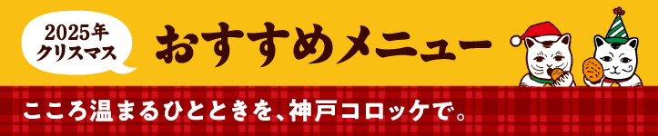 神戸コロッケの公式キャラクターである招き猫のイラストが目印のお店です。素材にこだわった安心・安全なおいしさはもちろん、子供から大人まで世代を超えて楽しんでいただける、ワクワクする商品を取り揃えています。