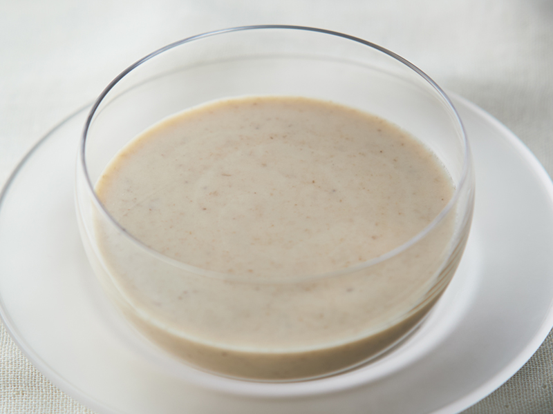マッシュルーム、ぶなしめじ、舞茸を使った香り高いポタージュです。煮込む前にきのこをソテーし、美味しさを丁寧に引き出しています。牛乳や生クリームでクリーミーな味わいに仕上げました。